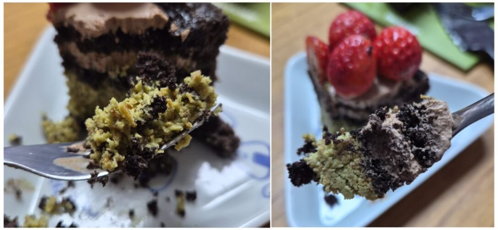 투썸 두초생 맛은 카다이프 피스타치오 덕분에 아작아작(?)한 식감과 고소한 피스타치오 맛이 정말 잘 조합되어 있구요. 초코 생크림과도 잘 어울려서 생각보다 정말 맛있었습니다.